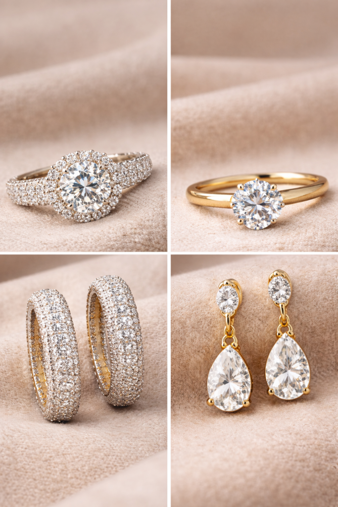 Pierścionki lub kolczyki pokryte wieloma małymi kamieniami mogą wyglądać zbyt dekoracyjnie. Coraz większą popularnością cieszą się natomiast projekty z jednym głównym kamieniem lub subtelnymi akcentami, które wyglądają bardziej elegancko i ponadczasowo.