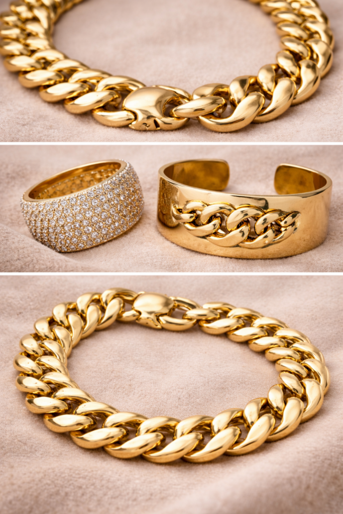 Nie oznacza to jednak, że większe elementy są całkowicie niemodne. Kluczem jest proporcja i elegancja – zamiast bardzo grubych łańcuchów częściej wybierane są lżejsze i bardziej subtelne projekty.
