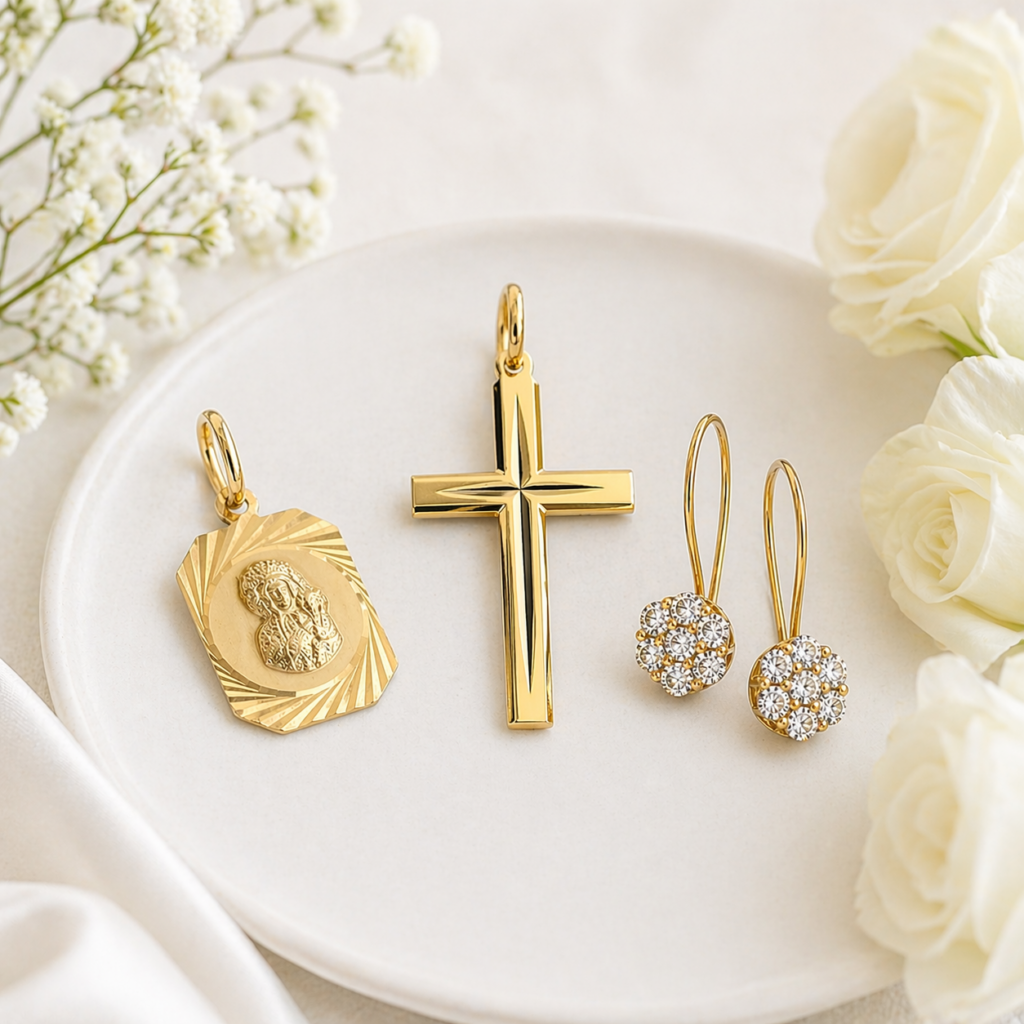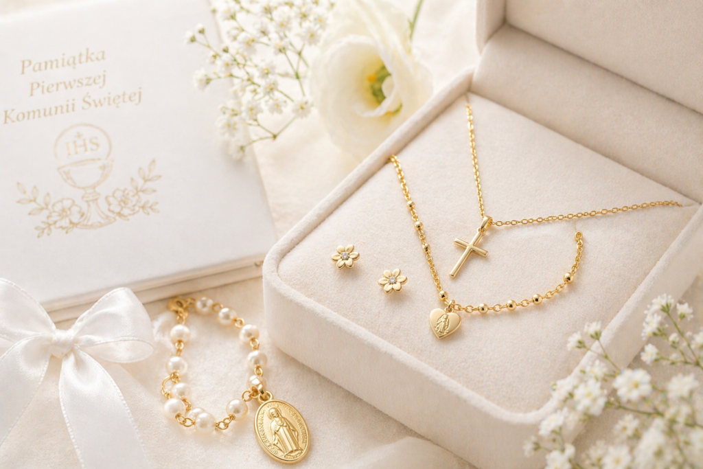 Złota biżuteria to najczęściej wybierany prezent komunijny i nie bez powodu. Jest elegancka, trwała i ma ogromną wartość symboliczną.