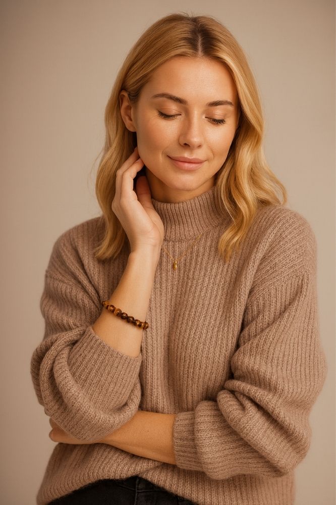 Jesień to czas miękkich swetrów, ulubionych jeansów i wygody w najlepszym wydaniu. W takim zestawieniu doskonale sprawdzi się bransoletka z tygrysiego oka, której miodowo-brązowe tony harmonizują z kolorami jesieni. Kamień ten symbolizuje spokój, pewność siebie i równowagę – idealny wybór na zabiegane dni, gdy chcesz wyglądać stylowo, ale bez wysiłku. To biżuteria, która łączy prostotę z naturą i szlachetnym blaskiem.