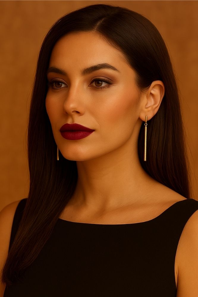 Równie doskonałym wyborem będą złote, wiszące kolczyki, które pięknie odbijają światło i subtelnie wysmuklają szyję. Delikatne, a jednocześnie wyraziste, doskonale dopełniają wieczorowy makijaż i klasyczną stylizację. To idealna biżuteria na kolację, przyjęcie lub jesienny wieczór w świetle świec – dodaje uroku, klasy i zmysłowości.